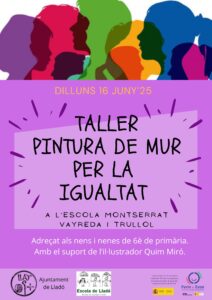 El dilluns 16 de juny, els i les alumnes de 6è de Primària de l’escola de Lladó pintaran un mural al pati de l’escola en favor de la igualtat. Amb el suport de l’il·lustrador Quim Miró.